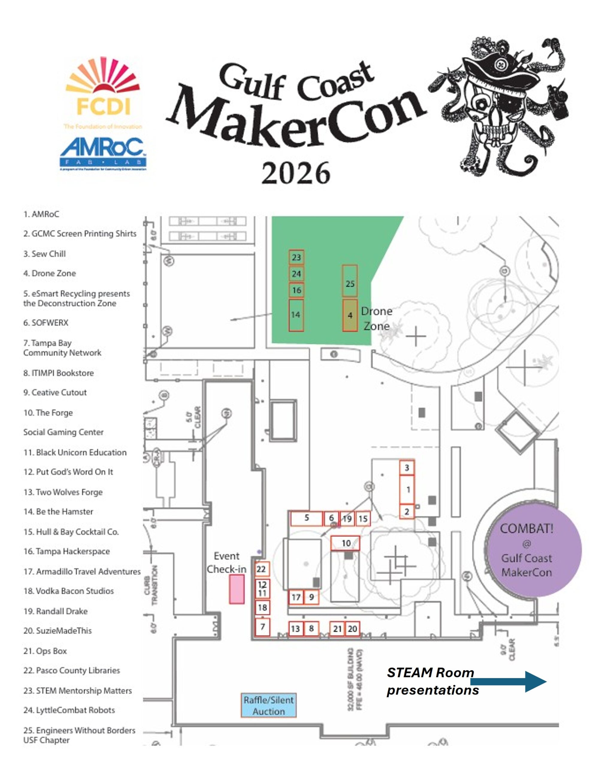 Gulf Coast MakerCon is April 18, from 10 am to 6 pm at Yeungling Draft Haus & Kitchen at 11109 N 30th St, Tampa, FL 33612 – The event is free and open to the public. STEAM Room Panel talks passes, advance raffle tickets and free general admission tickets can be secured a the link below. Click the event map above to download or enlarge.