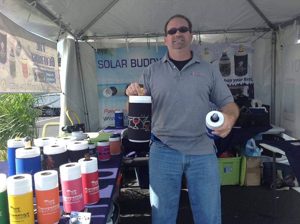 JB:  I’m Jeff Brouillette and I make the Bevfridge This invention of my simply chills bottles and cans with ice, and a patented rubber seal prevents the ice from coming out . You stay dry and your last sip is always colder than your first.