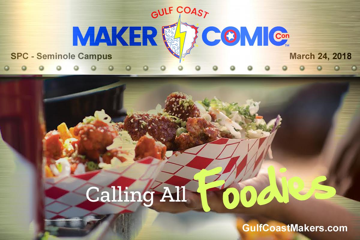 There’s more to Gulf Coast Maker & Comic Con than electronics and comics! We’ll also have some serious good eats! Look for these great food trucks out by the soccer field throughout the day, plus Nature’s Table will be open in the University Partnership building.