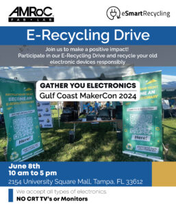 We’re super excited to have one of our long-time and favorite event partners back again for Gulf Coast MakerCon 2024! A cherished part of Gulf Coast MakerCon since 2015, eSmart Recycling combines environmental sustainability and social impact metrics which results in a comprehensive approach to offsetting carbon emissions through recycling technology, at both a corporate and residential level and empowers local communities by enabling access to technology and education in the process.