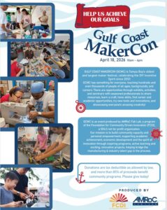 Gulf Coast MakerCon provides a powerful and meaningful way to connect with hundreds of curious, creative and innovative individuals who are looking for exciting and interesting products, services, ideas and opportunities. Sponsors can leverage the energy and interconnectedness of our active onsite and social networking audiences and engage this energetic audience with their businesses and services. A wide range of sponsorship packages is available, and we are happy to tailor something special to meet your needs. Sponsor recognition is available for donors of $250 and up. Click HERE or the image at rigth to see our Sponsor tiers and email Steve@ffcdi.org to share your support today!