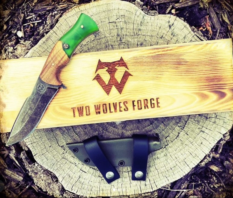 A display of available, handmade blades, as well as examples of previous builds